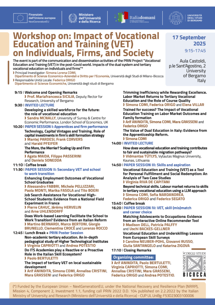 Workshop on: Impact of Vocational Education and Training (VET) on Individuals, Firms, and Society